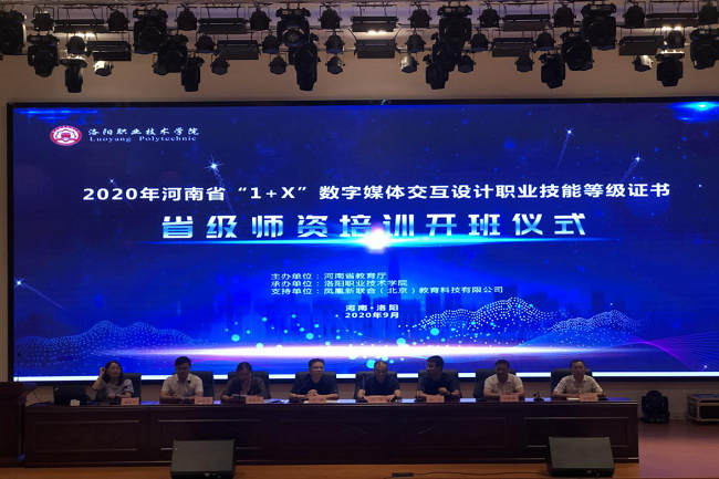 9月14日,由河南省教育厅主办,我校承办,凤凰新联合(北京)教育科技有限公司协办的2020年“1+X”数字媒体交互设计职业技能等级证书省级师资培训顺利开班。来自河南省20余所职业院校近60名教师参加了培训。学院教务处处长赵明、副处长童志杰,凤凰教育研究院执行院长、凤凰卫视威凤国际教育副总经理冯波,中沭教育河南分公司总经理赵龙飞、副总经理杜方等出席开班仪式。开班仪式由我校信息技术与城建学院院长侯艳丽主持。