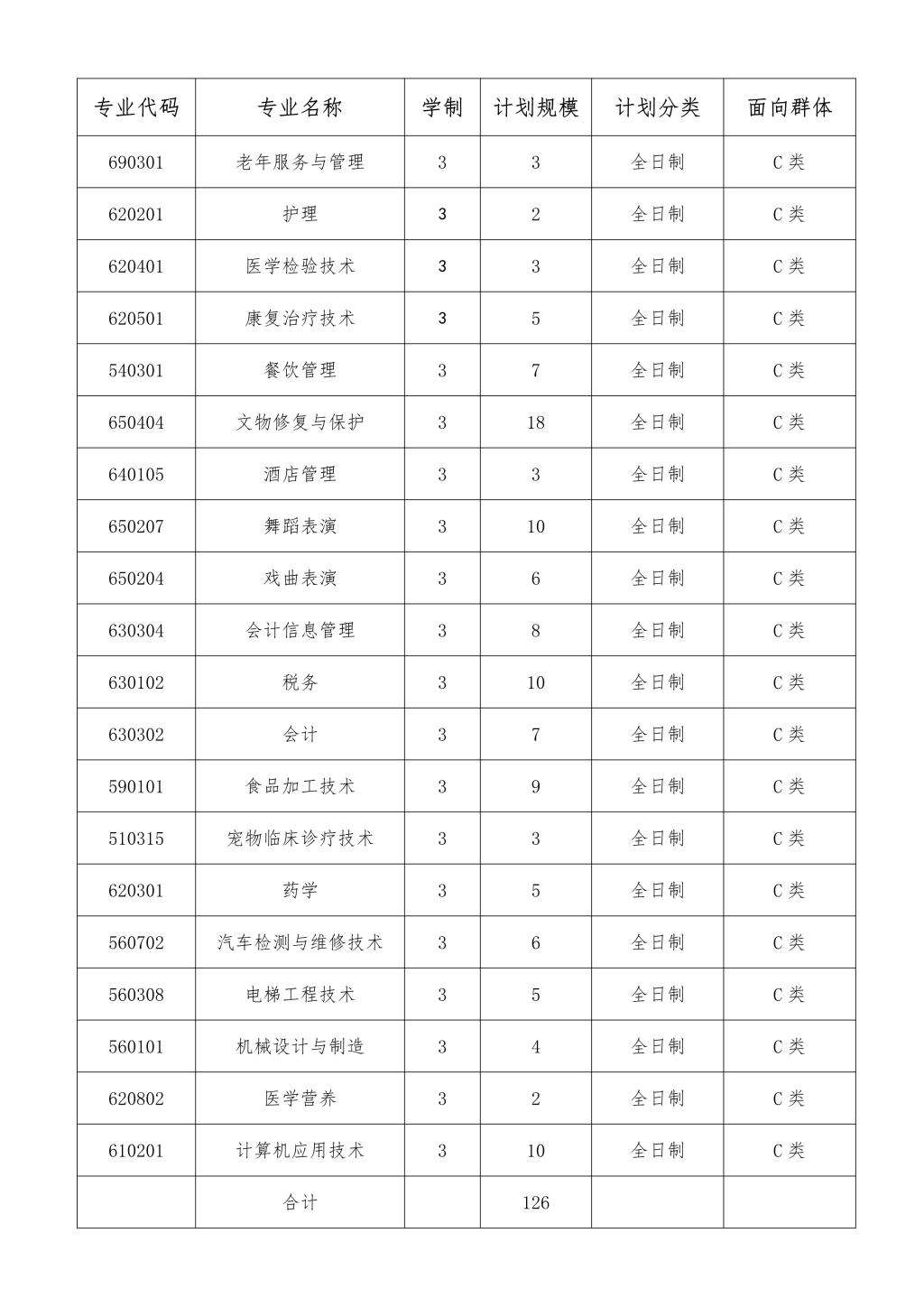 2020年扩招单招计划126人,具体专业计划如下: