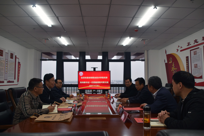 10月26日下午,安阳职业技术学院纪委书记陈海顺一行3人来我校考察交流纪检监察机构改革和纪检监察服务学院中心工作。学院党委书记朱美荣,纪委书记、监察专员王晓哲出席了座谈会。