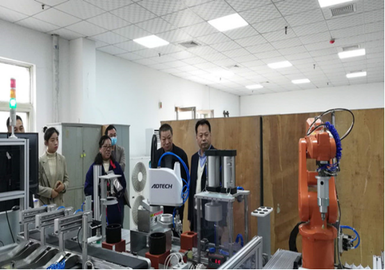 韩洪涛实地察看机电学院物联网实训教室的建设。在物联网实训教室,他与学校老师以及企业人员进行深入交流。他指出,物联网专业作为新开设专业,要与企业深入融合,深化校企合作,将企业一线的先进经验带到学校,把物联网专业办好。在机电学院工业机器人实训教室,对机电学院新进的工业机器人集成应用平台进行了仔细的询问,了解到本套设备对于提高学生技能,参加国赛、省赛具有重大意义,韩洪涛指出,学院支持工科专业的发展,在设备投入方面尽最大可能提供便利,支持学科专业群的建设和发展。