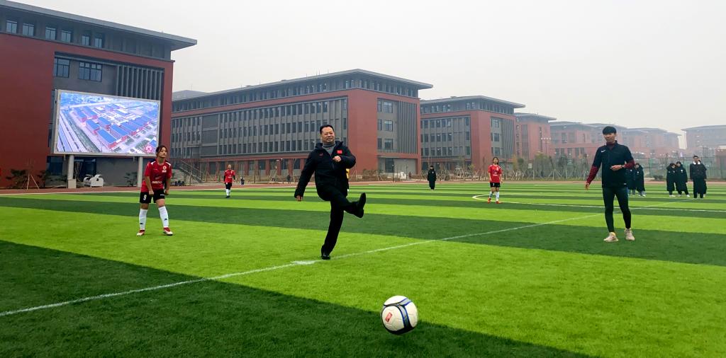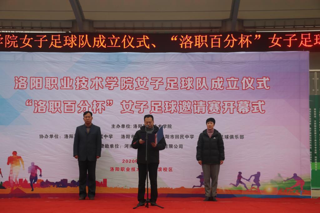 寒冷的冬天当不住运动的热情。11月28日,我校女子足球队成立仪式暨“洛职百分杯”女子足球邀请赛在新校区运动场举行。副院长韩洪涛、河南百分软件科技有限公司总经理裴亚辉出席仪式。