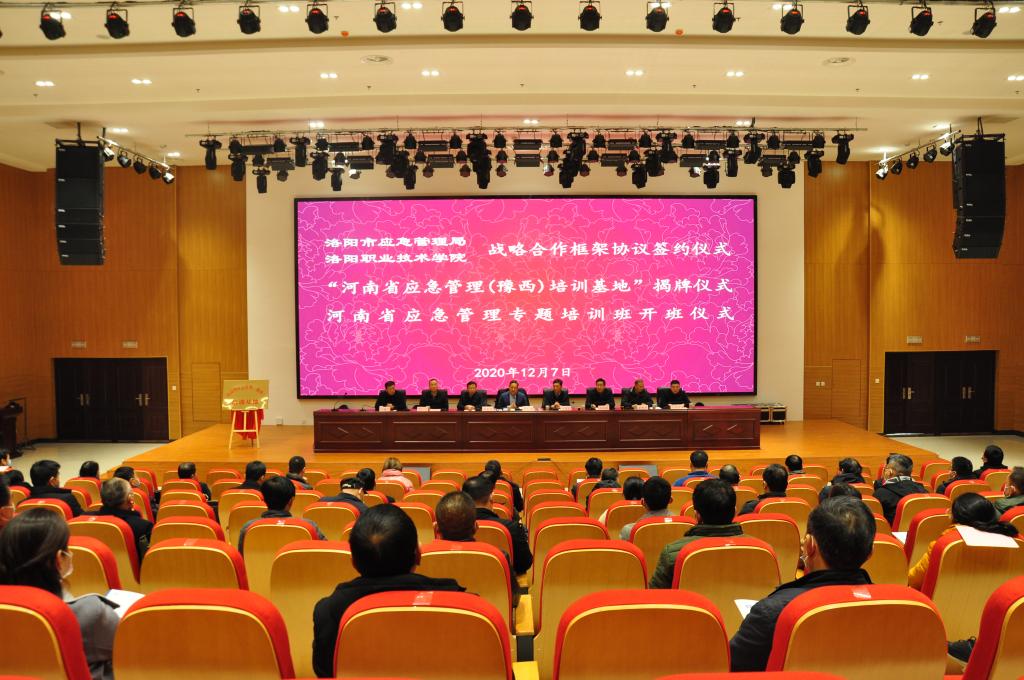 12月7日上午,我校又迎来一件大喜事!洛阳市应急管理局洛阳职业技术学院战略合作框架协议签约仪式暨培训基地”揭牌仪式在我校大学生活动中心举行,为期3天的河南省应急管理专题培训班开班。