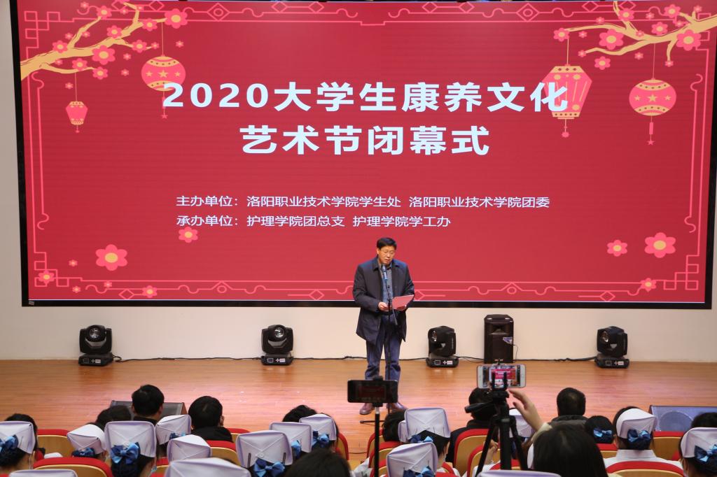 12月17日,由我校学生处、团委主办,护理学院团总支、学工办承办的2020年首届“大学生康养文化艺术节闭幕式暨优秀节目汇报演出”在大学生活动中心二楼心理剧场举行。副院长韦元民出席活动。