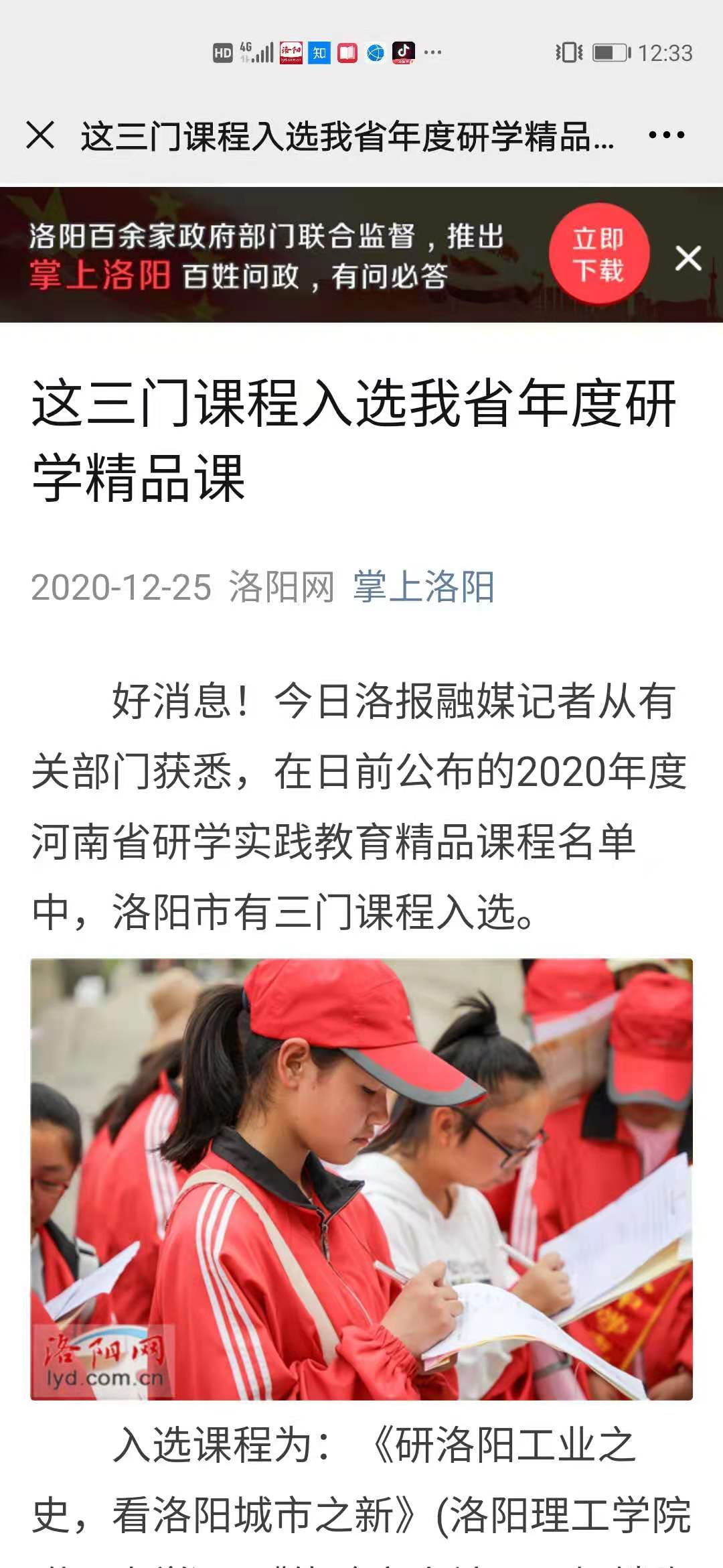 12月25日,洛阳网报道我校《体验窑火神工,解锁陶瓷修复》课程入选我省年度研学精品课。报道原文截图及相关链接如下: