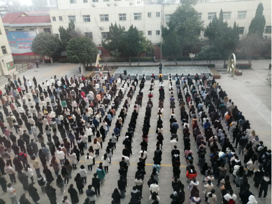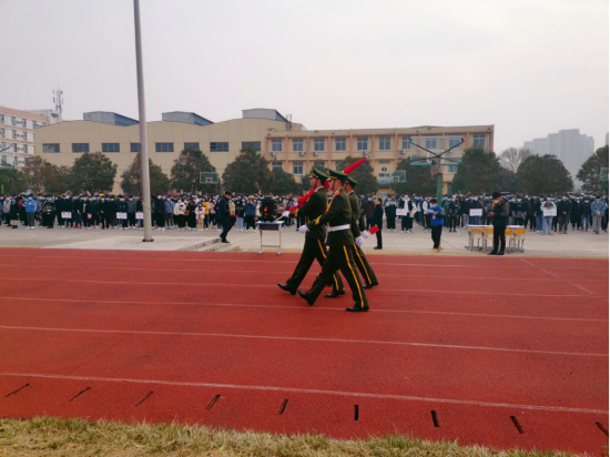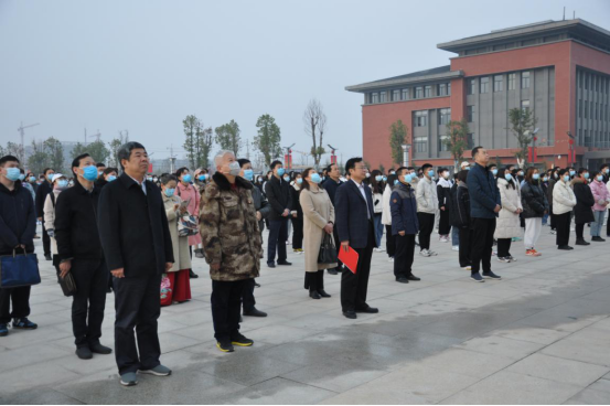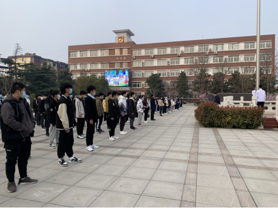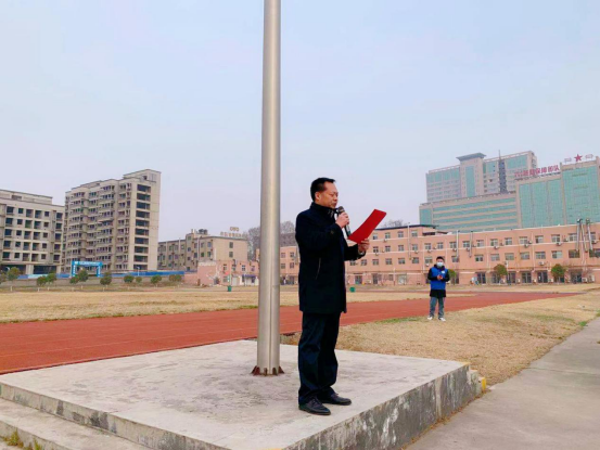 今春开学第一课主题为“传承红色基因 勇担时代使命”,副院长张志友主持升旗仪式。全体师生共唱国歌,向国旗行注目礼。