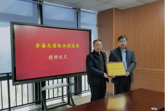 3月18日上午,洛阳市无偿献血办主任、市中心血站书记、站长吕运来,洛阳市献血办副主任李雯一行来到我校,为我校颁发“全国无偿献血促进奖单位奖”奖牌。学院副院长张志友出席授牌仪式。
