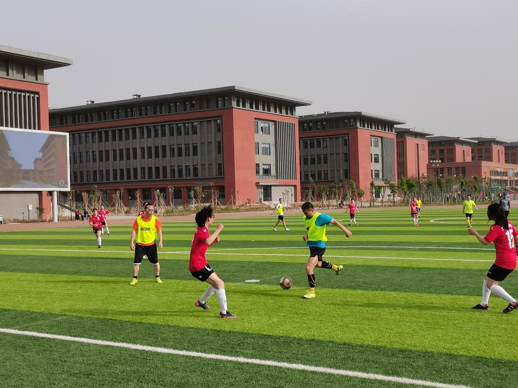 比赛伊始,双方队员和现场近千名学生观众观看了中国女足逆转韩国队晋级东京奥运会的精彩集锦,奏唱国歌,把现场气氛推向了高潮。伴随着裁判一声哨响,比赛在欢呼和呐喊声中激情上演。球员们的每一次拼抢、每一次进攻、每一个丢球与进球,处处体现着团队协作、互相尊重、拼搏进取、遵守规则的体育精神,彰显了校园足球的无限魅力,诠释了“以体育人”的教育理念,加深了师生情谊,活跃了校园文化氛围。