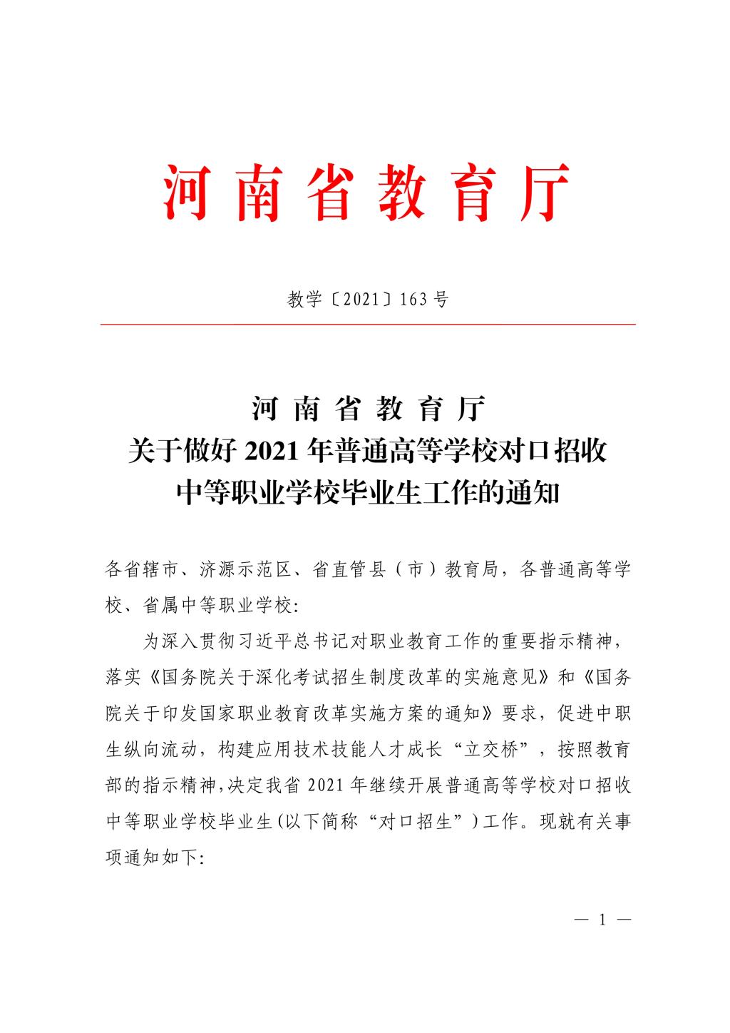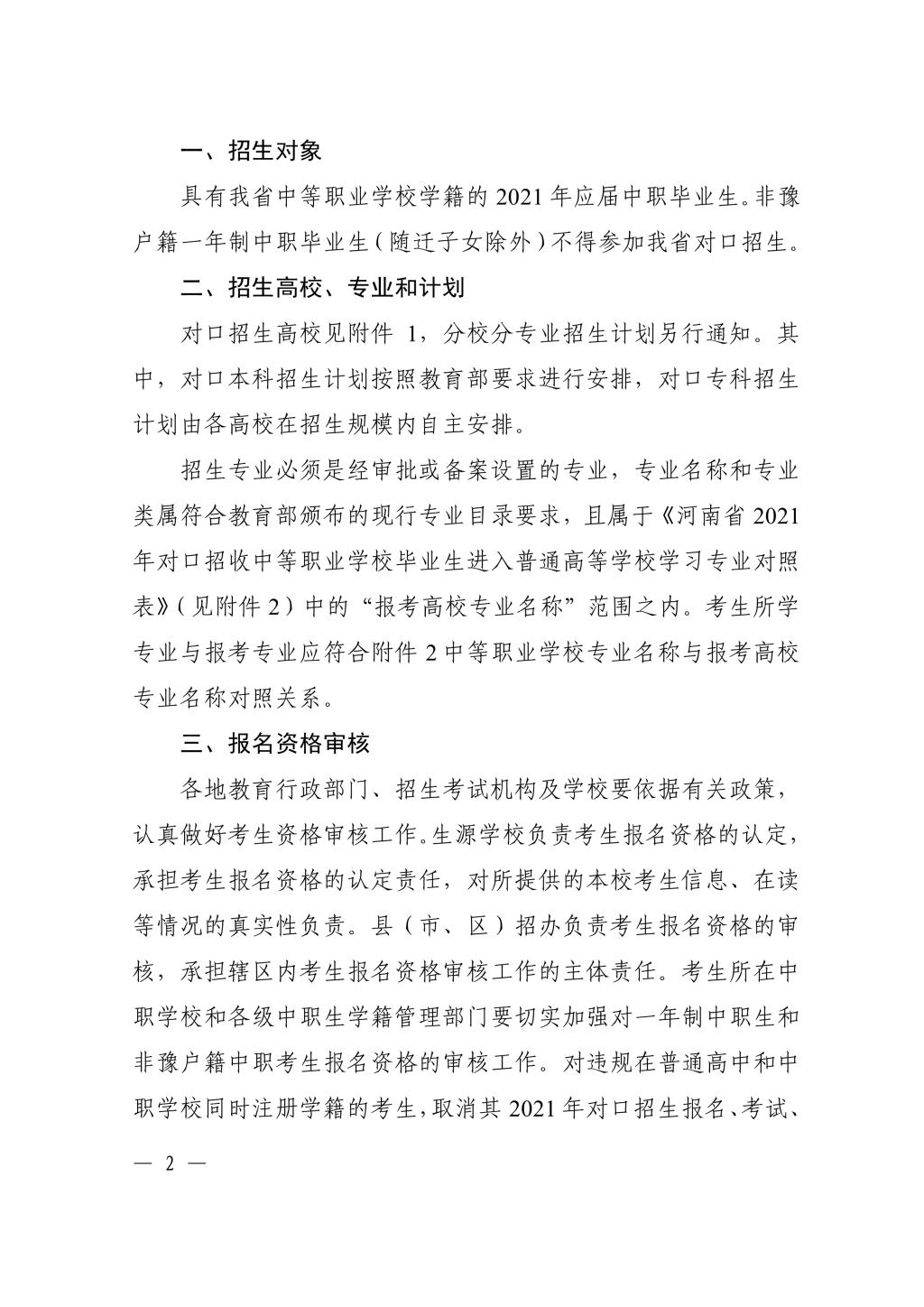 关于做好2021年普通高等学校对口招收中等职业学校毕业生工作的通知