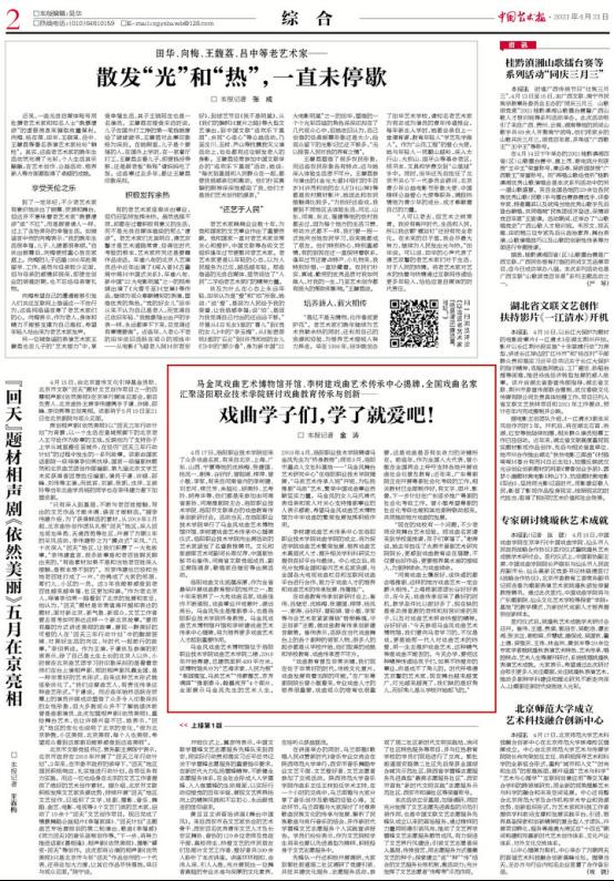 4月20日中国艺术报刊发我校戏曲学子们对艺术的爱从未停歇。相关内容及链接如下: