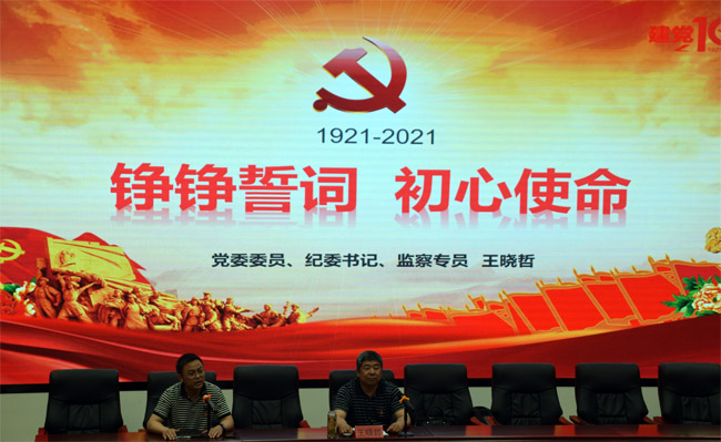 王晓哲结合自身学习党史体会,以“铮铮誓词,初心使命”为题,从中国共产党入党誓词的历史渊源、发展脉络和对党员的要求三个方面进行了授课。