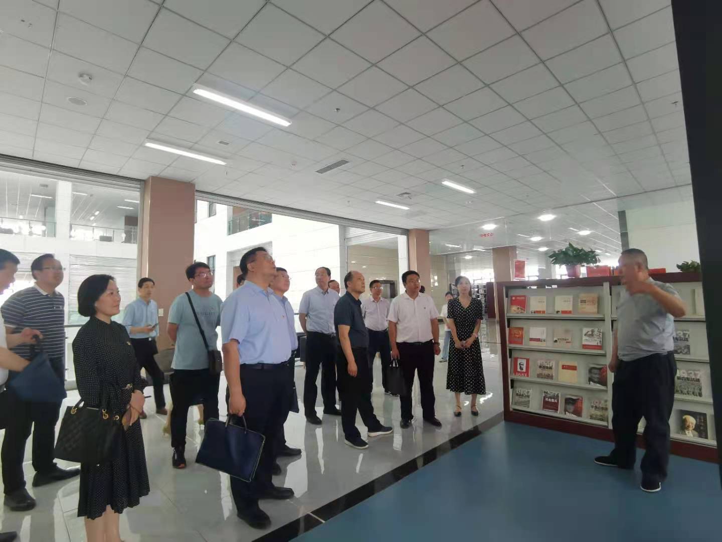 巡回指导组先后在图书馆查看了机关党总支党史学习教育情况展板、图书馆党史与思想教育专区设置情况,在党史学习教育办公室查阅我校党史学习教育开展情况。随后,又来到医学2号实训楼查看推拿专业学生为师生办实事现场,在4号教学楼参观了“黄河情”巨幅剪纸书法长卷、党史百幅作品创作现场,充分肯定我校工作及成效。
