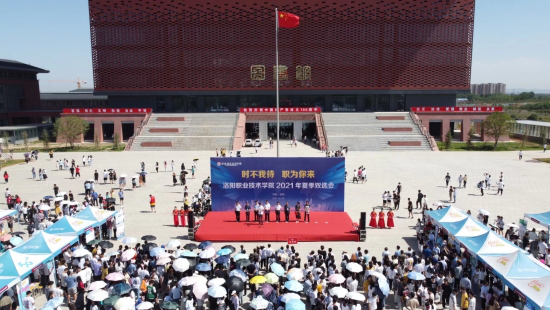 时不我待,职为你来。6月5日上午,洛阳职业技术学院图书馆求知广场人声鼎沸。洛阳职业技术学院2021年夏季双选会正在这里举行。来自北京、浙江等全国各地的300余家企业,携带3万余份Offer来洛职“抢人”。