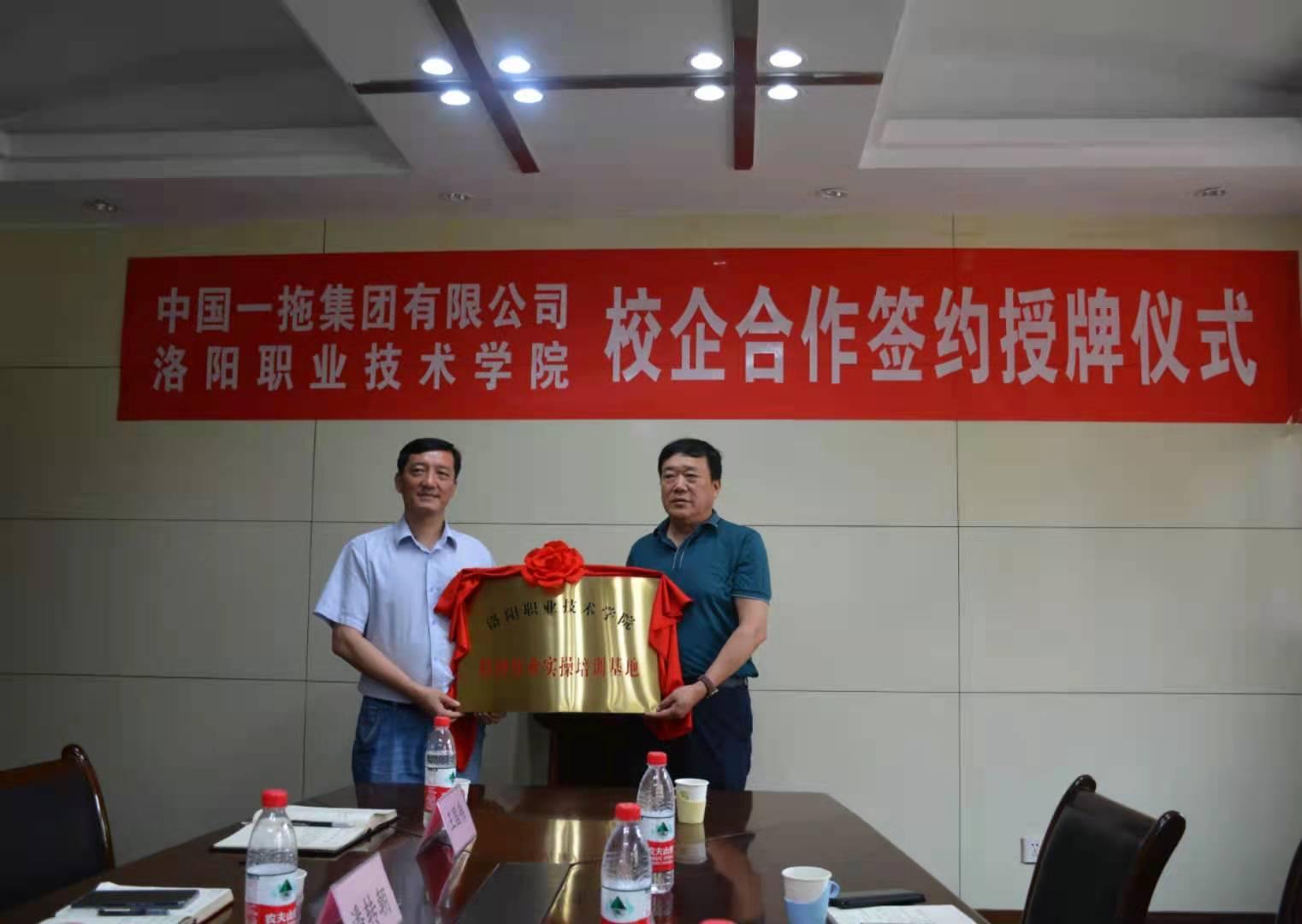 6月10日上午,我校与中国一拖集团有限公司校企合作签约暨“洛阳职业技术学院特种作业实操培训基地”授牌仪式在一拖集团举行。副院长介建中,机电学院院长、继续教育与培训中心负责人,中国一拖集团人力资源部副部长潘转朝、能源分公司经理孙澜、党委书记陈耀轩等参加仪式。