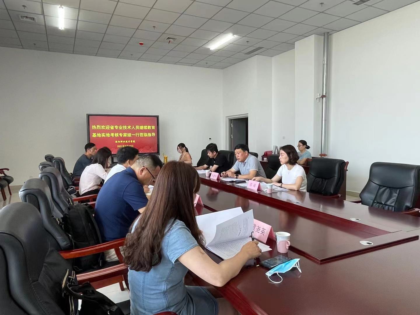 汇报会上,介建中代表学院致欢迎词,并详细介绍我校的基本情况,苏萌对照基地考核要点对我校专业技术人员继续教育基地建设情况作了专题汇报。考核验收专家组通过听取汇报、查阅资料、技术抽查、访谈咨询、质询答辩等方式,对我校河南省专业技术人员继续教育基地的制度建设、场地设施、开展培训情况、信息化建设、网络安全防护情况等考核项目逐一进行了认真的检查测评。