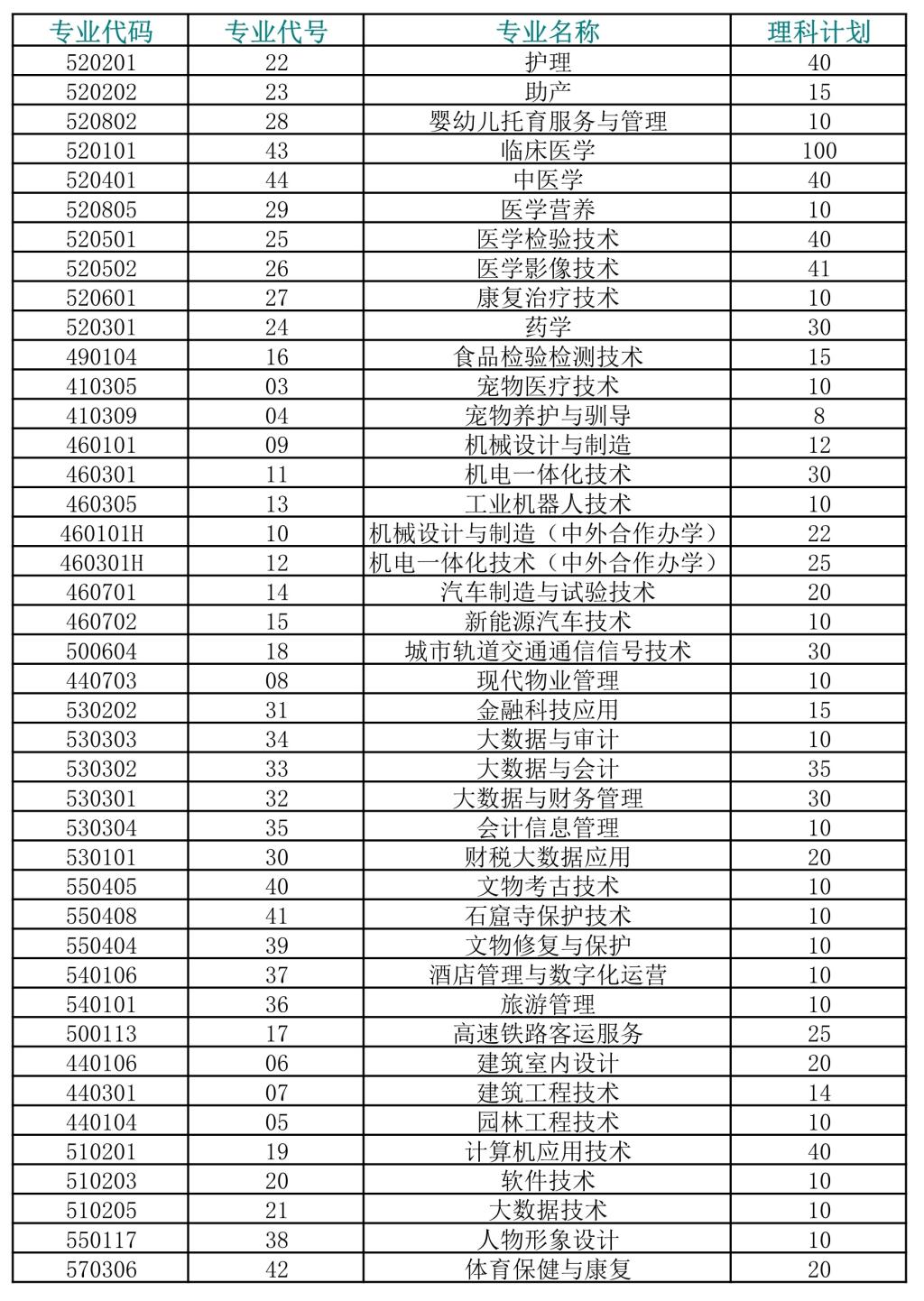 2021年洛阳职业技术学院普招专业代号及计划查询