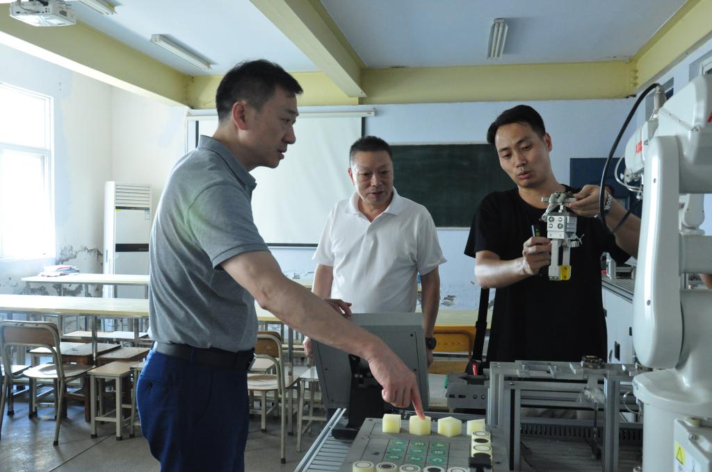 在高新校区机电工程学院,赵健与班子成员及教研室主任进行座谈,询问专业设置、招生就业、师资结构情况,听取了机电工程学院的办学优势、发展规划和面临的困难。各教研室主任介绍了专业历史传承、专业特色、未来规划、学生人数等情况。赵健又实地察看了机电工程学院的教学实训场地和实训设备。
