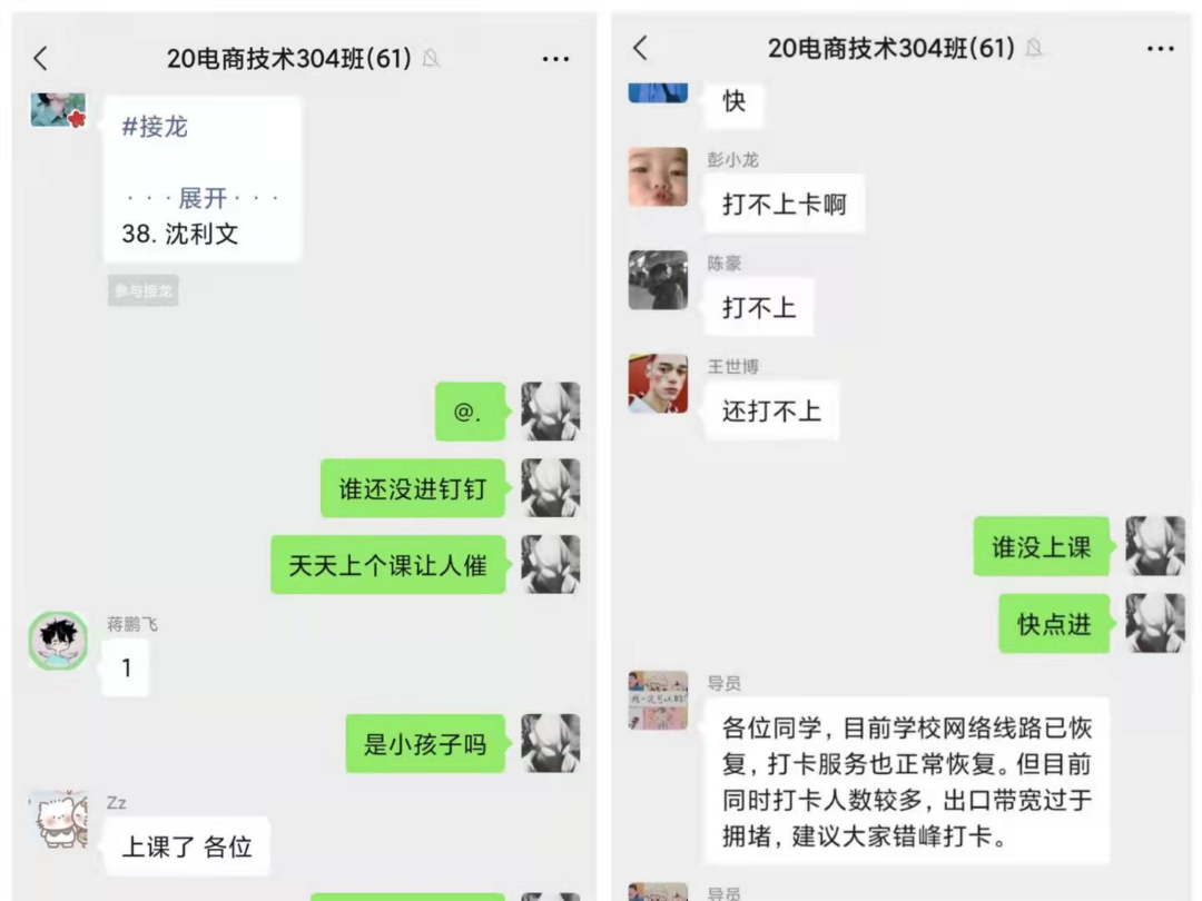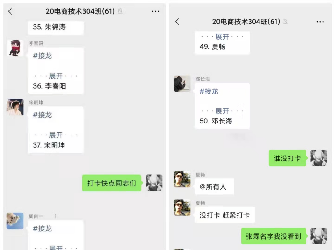 在每节课开始10分钟前,老师们都会发布课前签到通知,为了保证大家能够及时打卡,做到每节课不缺席,开课前五分钟,我将查看未签到名单,催促他们完成签到。