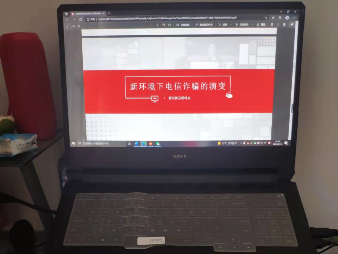 下午是安全知识讲座,今天是关于电信诈骗的安全教育。老师分享了电信诈骗的案例和防范措施,让我们更清楚的认识到新形势下电信诈骗的演变,更深刻地了解到,如果遇到朋友要求转账汇款,请再三确认身份,谨防诈骗,如若真的遇到电信诈骗,请及时报警。