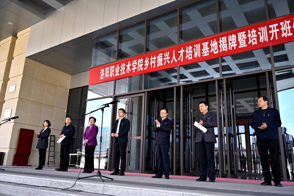 10月22日,洛阳职业技术学院乡村振兴培训基地揭牌暨培训开班仪式在栾川县伏牛山乡村振兴人才教育中心举行。我校党委书记朱美荣、副院长介建中,党政办、党委组织部、继续教育与培训中心国际教育中心等部门负责人,栾川县委副书记张亚磊,县委常委、组织部长庄宇峰等出席仪式。