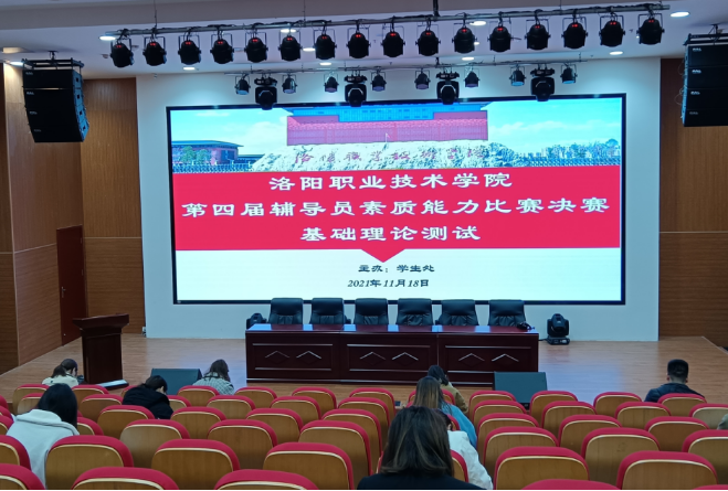 11月18日,我校第四届辅导员素质能力大赛决赛在大学生活动中心举行。本次比赛共分为初赛、决赛两个阶段。经过前期初赛,共有15名辅导员进入决赛。决赛共设置理论测试、案例研讨和谈心谈话三个环节,邀请洛阳理工学院经济管理学院学工办主任王雅君(获河南省第八届辅导员素质能力大赛特等奖)担任特邀评委,副院长张志友到现场指导比赛。