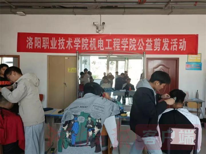 11月25日下午,在洛阳职业技术学院机电工程学院高新校区综合楼一楼大厅,举行了一场特别的公益剪发活动。来自机电工程学院的三名“理发师”,动作娴熟、耐心细致,约10分钟一个清爽利落的发型就理好了,收获了同学们的一致好评。