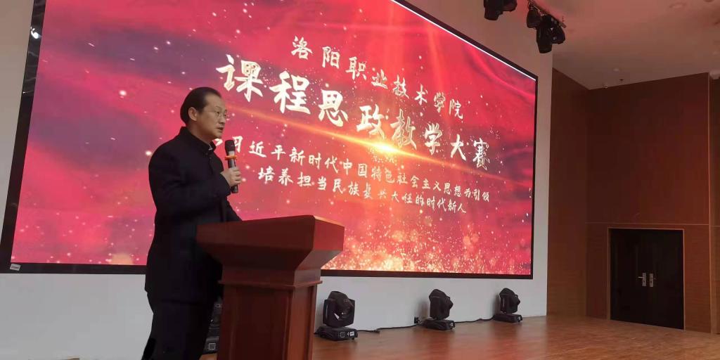 12月23日下午,我校在大学生活动中心二楼举办高水平专业群教师课程思政教学大赛,副院长李保安致辞。比赛邀请了河南科技大学物理工程学院副院长王辉教授、洛阳理工学院信息化技术中心主任李传锋教授、洛阳师范学院马克思主义学院硕士生导师朱先平教授,我校教学督导组组长杨荣跃副教授、医学院刘笑梦教授和曹姣玲教授、护理学院朱莉副教授作为评委。