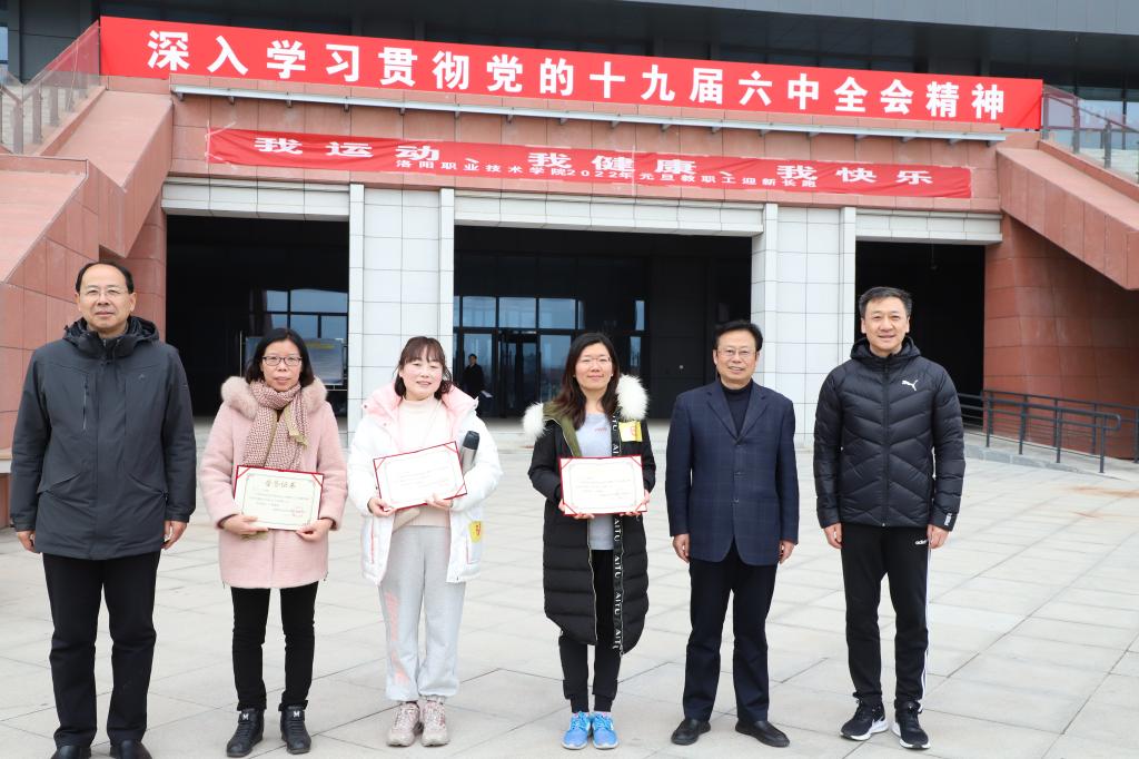 发令枪响后,教职工们如离弦之箭飞奔而出,大家相互鼓励、奋勇争先。最终,经过激烈的角逐,郭茜雅、吴玲、马真真分别获得女子组40岁以下组前三名,朱文文、景书坛、朱志红分别获得女子40岁(含)以上组前三名,张璐、杨刚亮、饶骞分别获得男子45岁以下组前三名,尹燕杰、侯育谦、田阔分别获得男子45岁(含)以上组前三名,校党委书记朱美荣、院长赵健、党委副书记任晓平分别为各组别前三名颁奖。