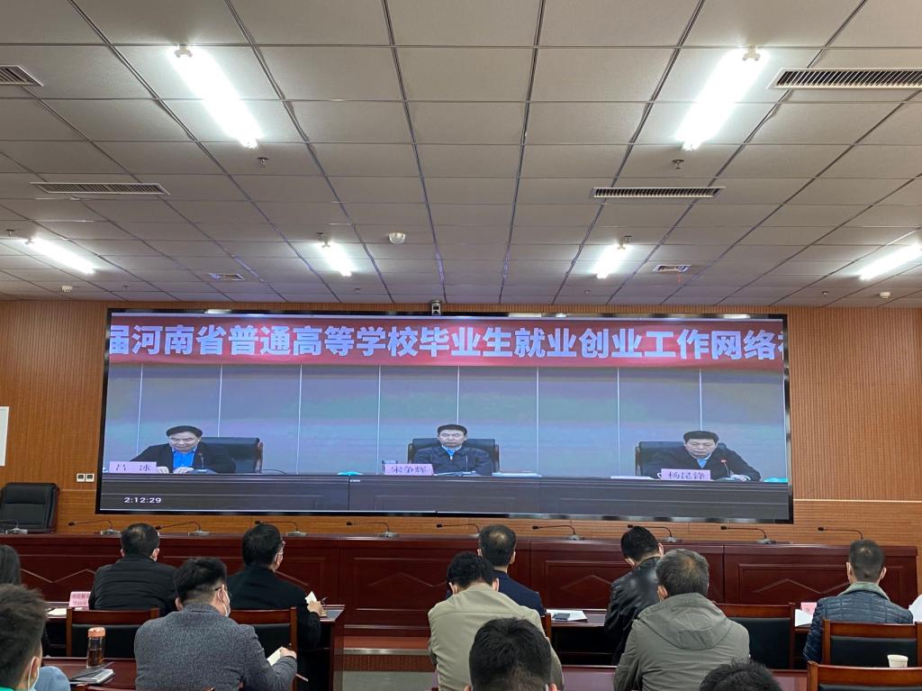 3月4日下午,我校在图文信息楼930会议室组织收听收看2022届河南省普通高等学校毕业生就业创业工作视频视频会议。院长赵健、副院长张志友,招生就业处、教务处、学生处、团委、校企合作与产教融合中心、继续教育与培训中心等部门负责人,各二级学院院长、副书记(副院长)、就业专干和全体毕业班辅导员参加会议。