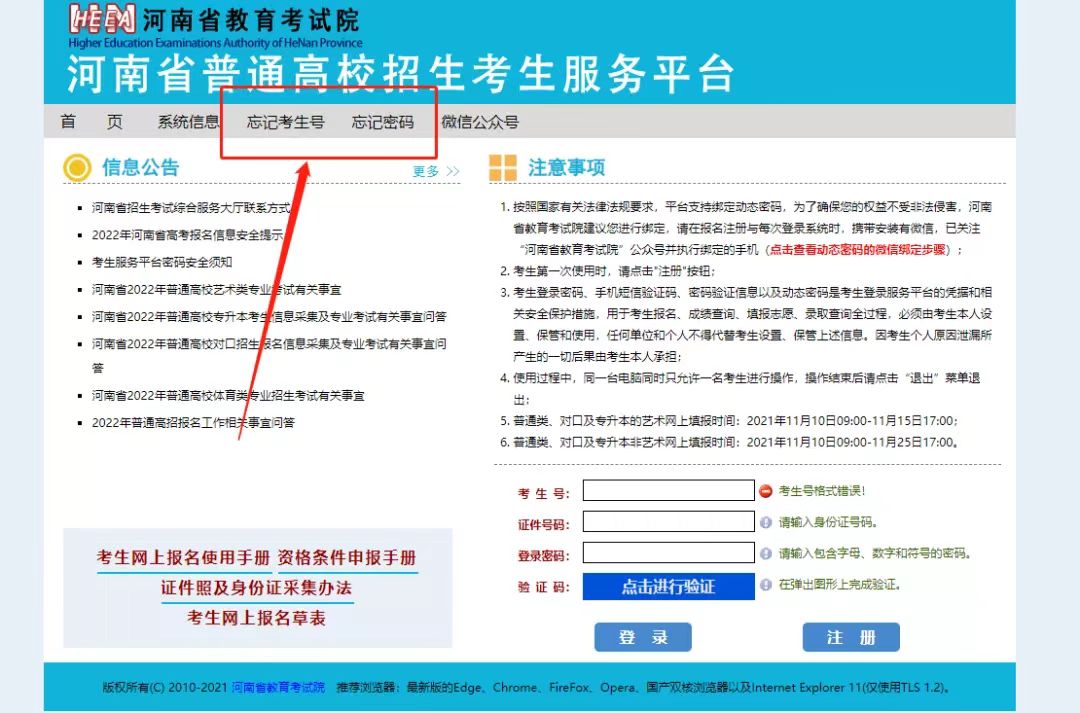 ▲河南省普通高校招生考生服务平台