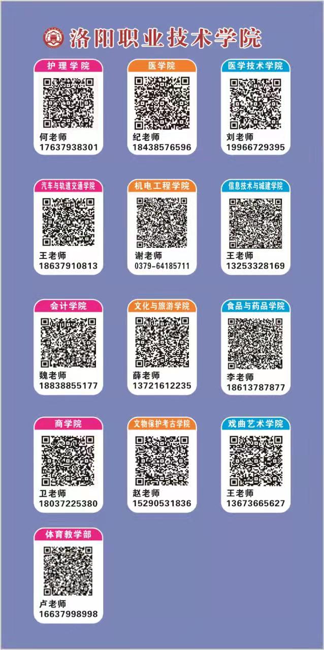 洛阳职业技术学院各学院招生官方QQ群及老师联系方式: