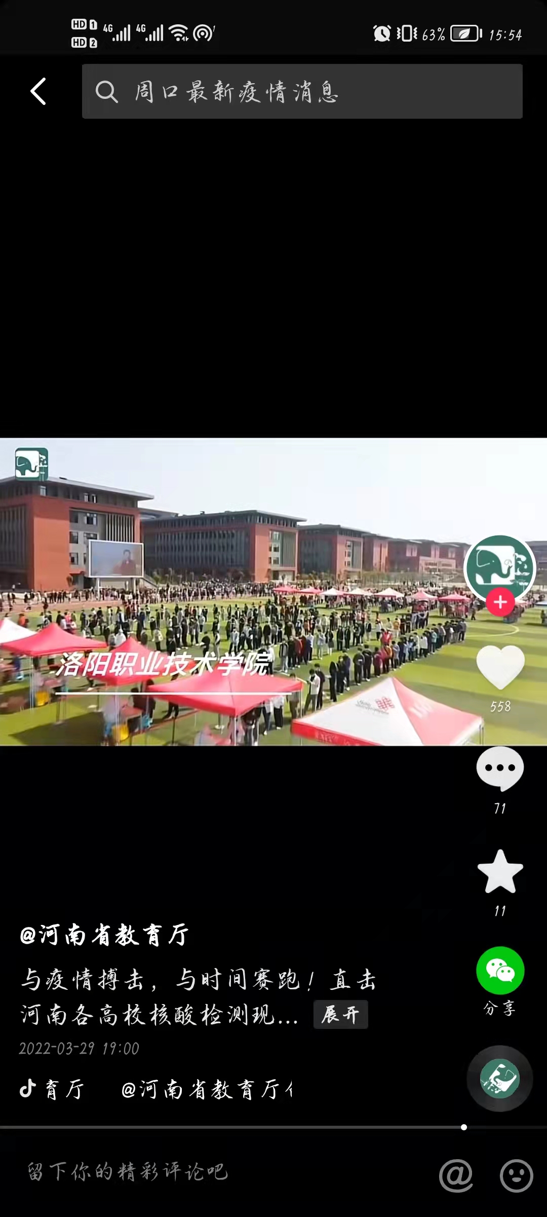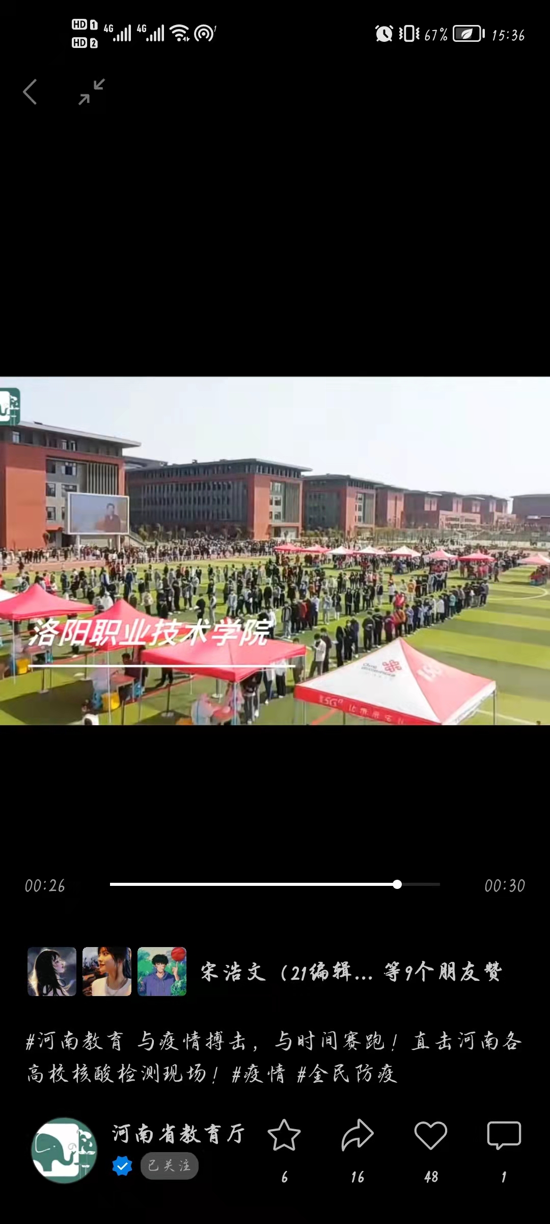 河南省教育厅抖音号、视频号:与疫情搏击,与时间赛跑!直击河南各高校核酸检测现场!