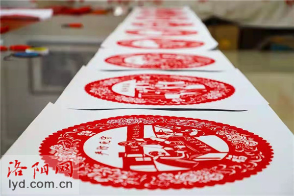 3月初,洛阳职业技术学院剪纸艺术研究社的学生们在王飞的带领下开始创作。学生们利用课余时间进行作画、裁剪、装裱等各个环节,最终在一个月的时间内,成功完成9幅作品。
