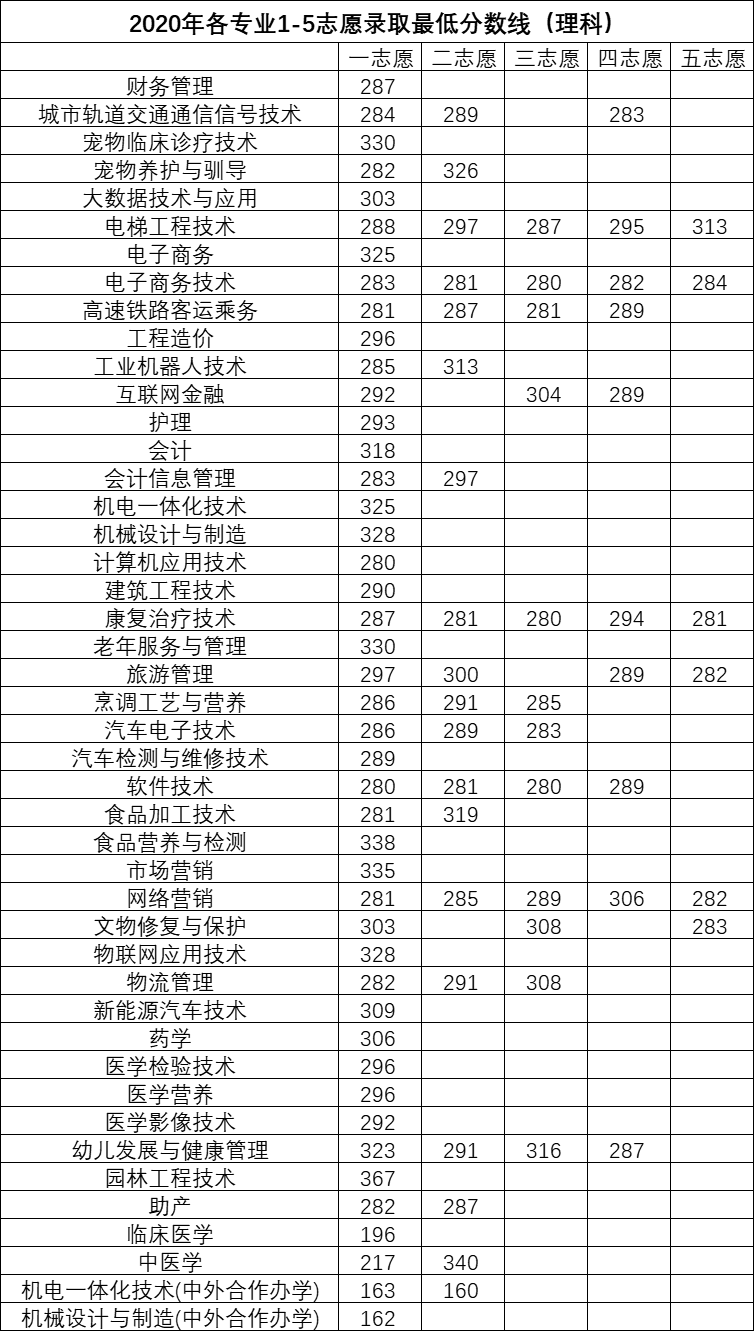 2020-2021年我校各专业1-5志愿录取最低分数线