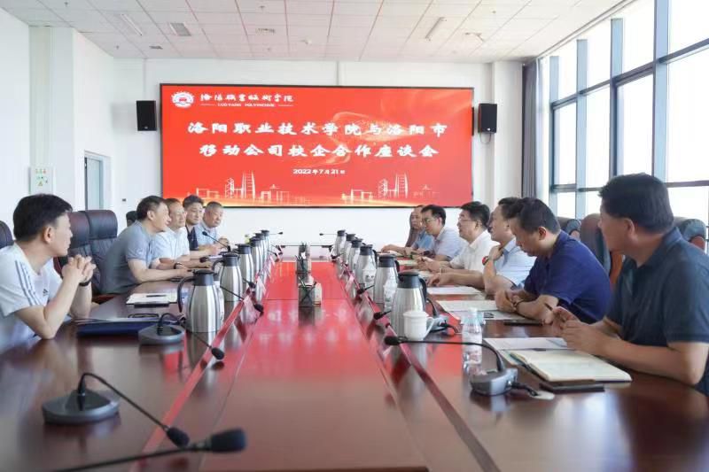7月21日上午,河南移动洛阳分公司一行莅临我校考察调研,河南移动洛阳分公司总经理王磊、副总经理曹飞,我校院长赵健、副院长李保安出席座谈会。