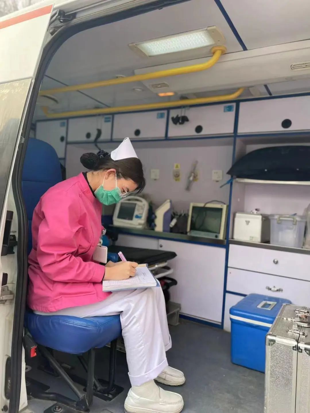 约5分钟后,王巧玉陪受伤女子坐进了救护车。车上,慢慢苏醒的伤者,抓着王巧玉的手,不停地说着“我怕”“我想儿子”。王巧玉从随车监护仪看到,受伤女子的血压很低。