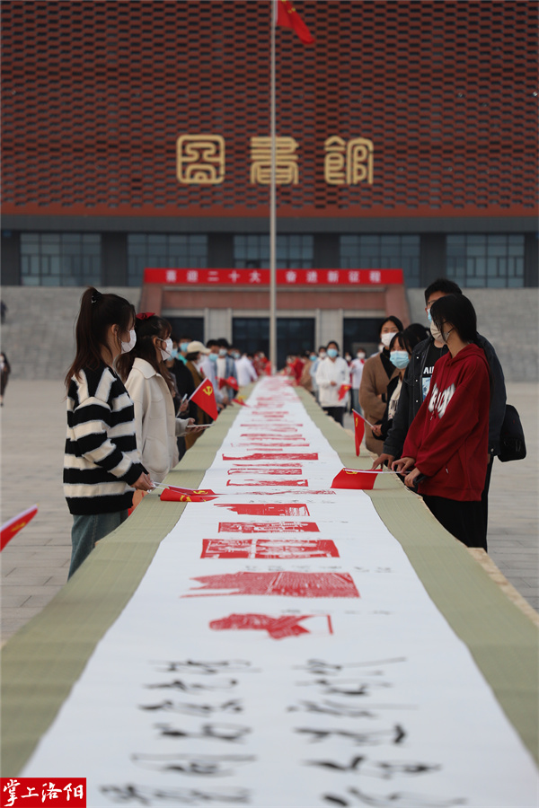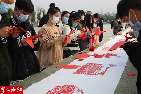 20日,洛阳职业技术学院举行“共剪同书爱党情 踔厉奋进新时代”活动,师生共同完成一幅长达100米的主题剪纸长卷最终创作。