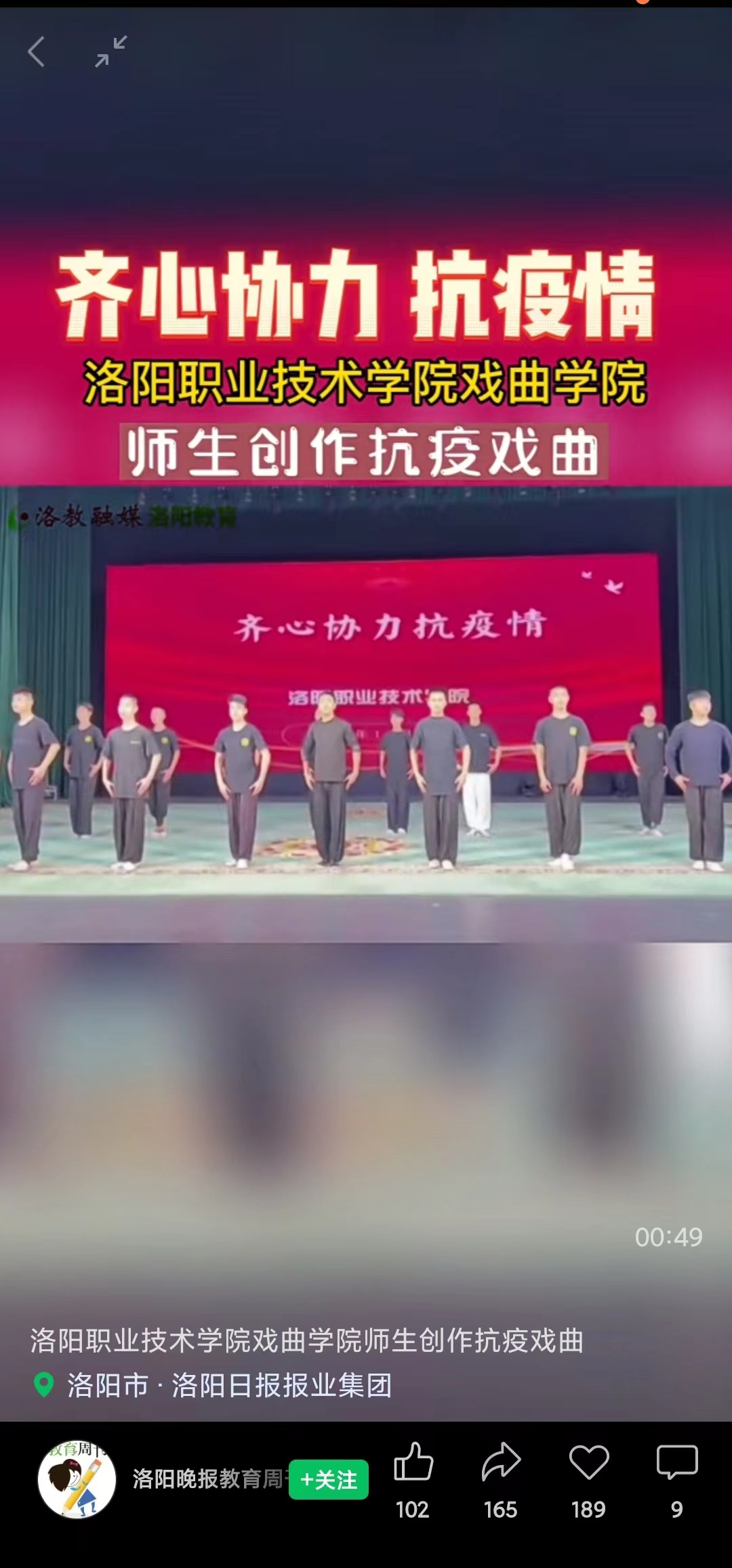 洛阳晚报教育周刊视频号:洛阳职业技术学院戏曲学院师生创作抗疫神曲
