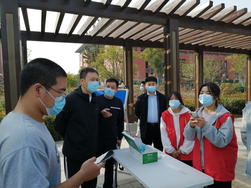 在伊滨校区,赵健分别到一号餐厅操作间、西大门、后勤管理处、“三保人员”留守校园住宿区和全员核酸检测现场查看疫情防控各项措施落实情况,重点对学校全封闭管理期间物资供应、食品安全、“三保人员”住宿情况进行检查指导。