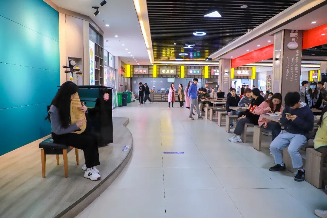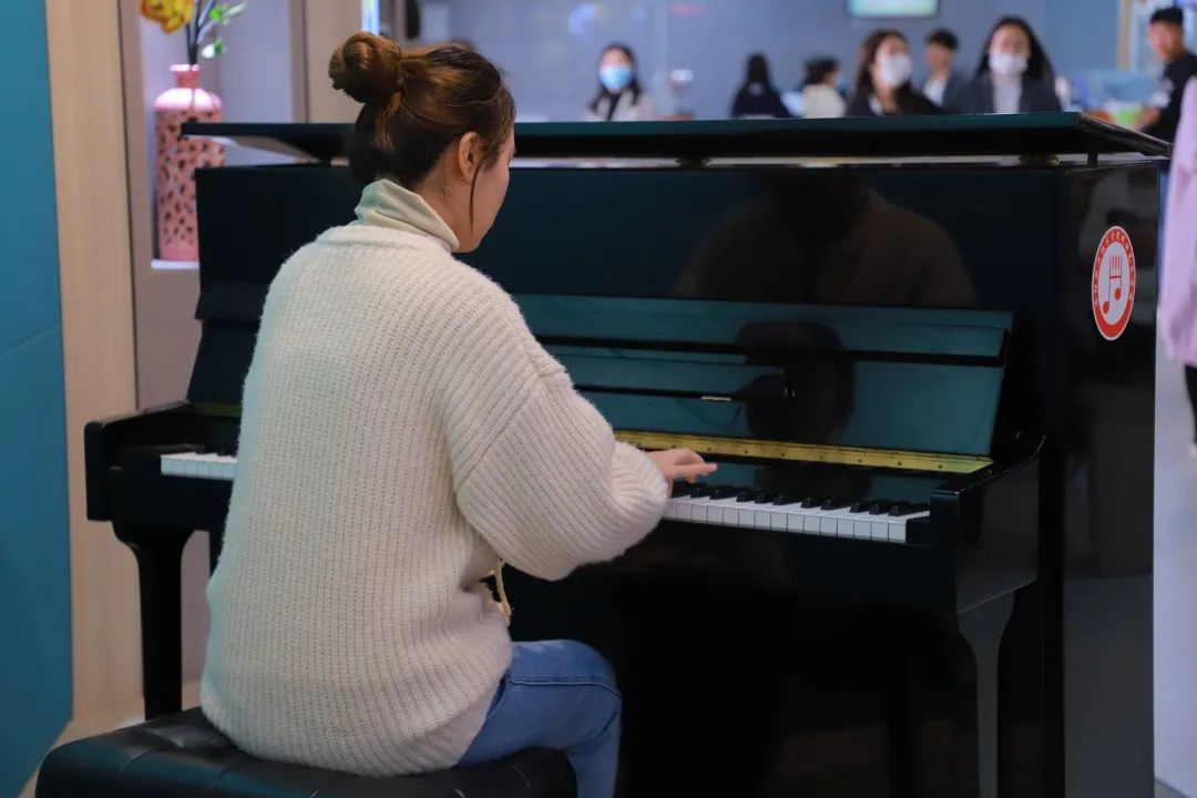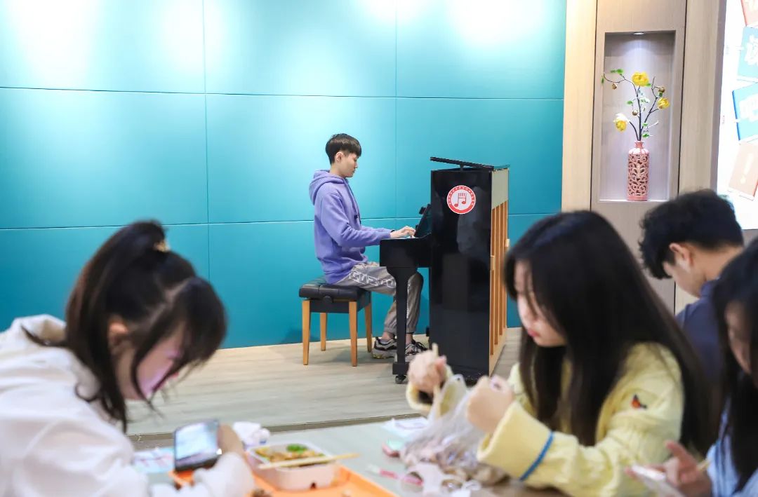 正在餐厅就餐的董永琦看到摆放的钢琴,便自告奋勇去弹奏了一首《雨的印记》。她表示,小学阶段自己练习过两年的钢琴,虽然现在学习的是护理专业,平时很少有时间再去练习,但是看到餐厅里摆放着的钢琴,便忍不住去弹奏了一段。“能够在餐厅听到悠扬的琴声,特别意外,也特别惊喜。”董永琦说,“边吃饭边听着音乐演奏,感觉饭菜都更香了。”