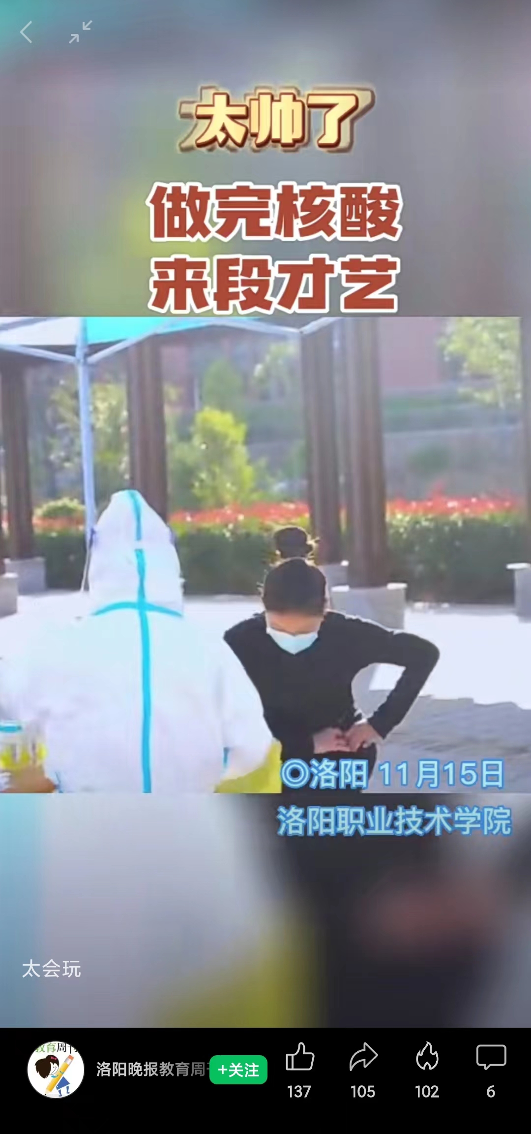 洛阳晚报教育周刊视频号:洛阳职业技术学院学生做完核酸,来段才艺,太会了!