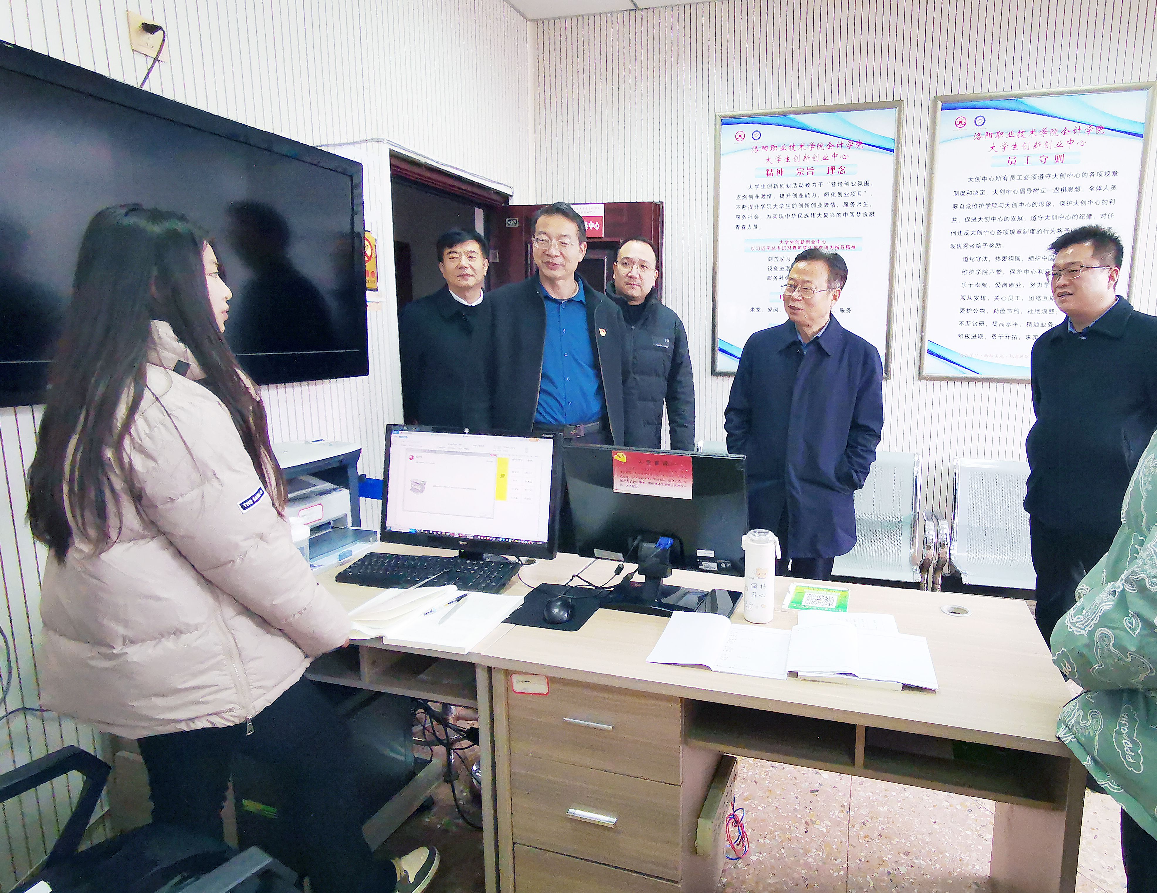 在会计学院,朱美荣先后来到大学生创新创业活动中心、智能化审计实训中心、学生食堂,并听取了新学期工作计划和工作思路汇报,详细了解了党建工作、师资队伍建设、专业转型、课程改革等各项工作开展情况。他强调,一是要明确工作重点,对标对表“双高校”和“职教本科专业”建设标准,紧抓职业教育发展契机,加快推进内涵建设;二是要持续转变思想观念和工作作风,深入贯彻落实立德树人根本任务,树牢“把学生放在第一位”的工作理念并落实到细节中,扎实做好服务育人工作;三是要打造专业特色,占领人才培养的市场优势,立足洛阳产业发展需要,为地方经济社会发展培养出更多高素质的应用型技能型人才。
