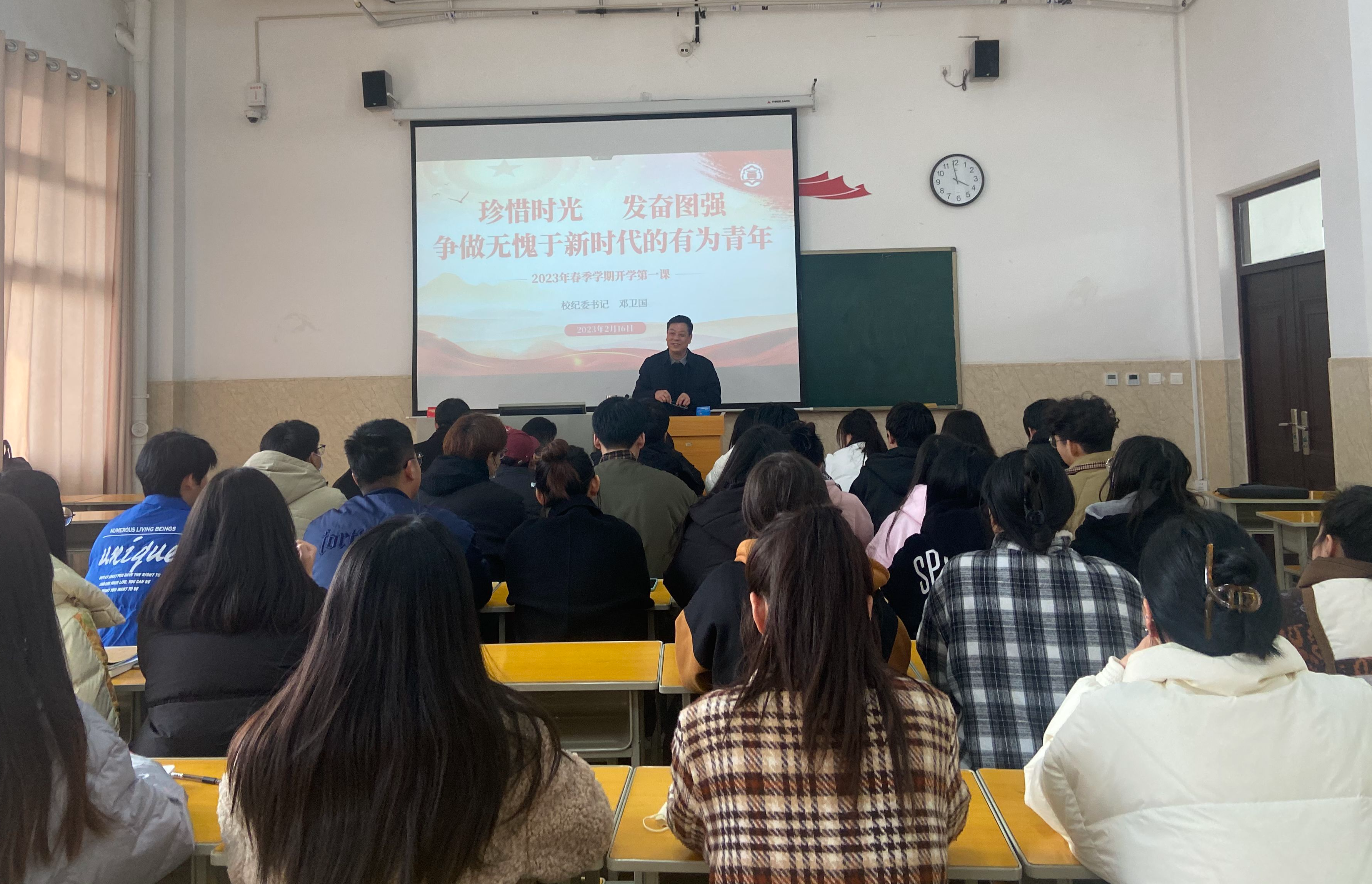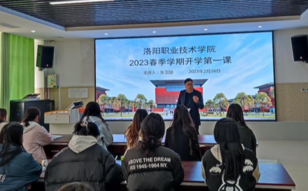 纪委书记邓卫国以《珍惜时光奋发图强争做无愧于新时代的有为青年》为主题,分别从正确对待认识疫情,保持良好的心态,坚守初心使命三个方面向电商物流学院学生讲授开学第一课。他表示,疫情三年以来,全体洛职人团结一心、并肩作战,交出了一份优秀的“洛职抗疫答卷”。邓卫国强调,一个国家的进步镌刻着青年的足迹,一个民族的未来寄托于青春的力量,他希望同学们能够立足于新时代新征程,不忘初心使命,坚持正确人生道路,练就过硬本领,发扬艰苦奋斗的传统,充分彰显青年大学生的责任与担当。