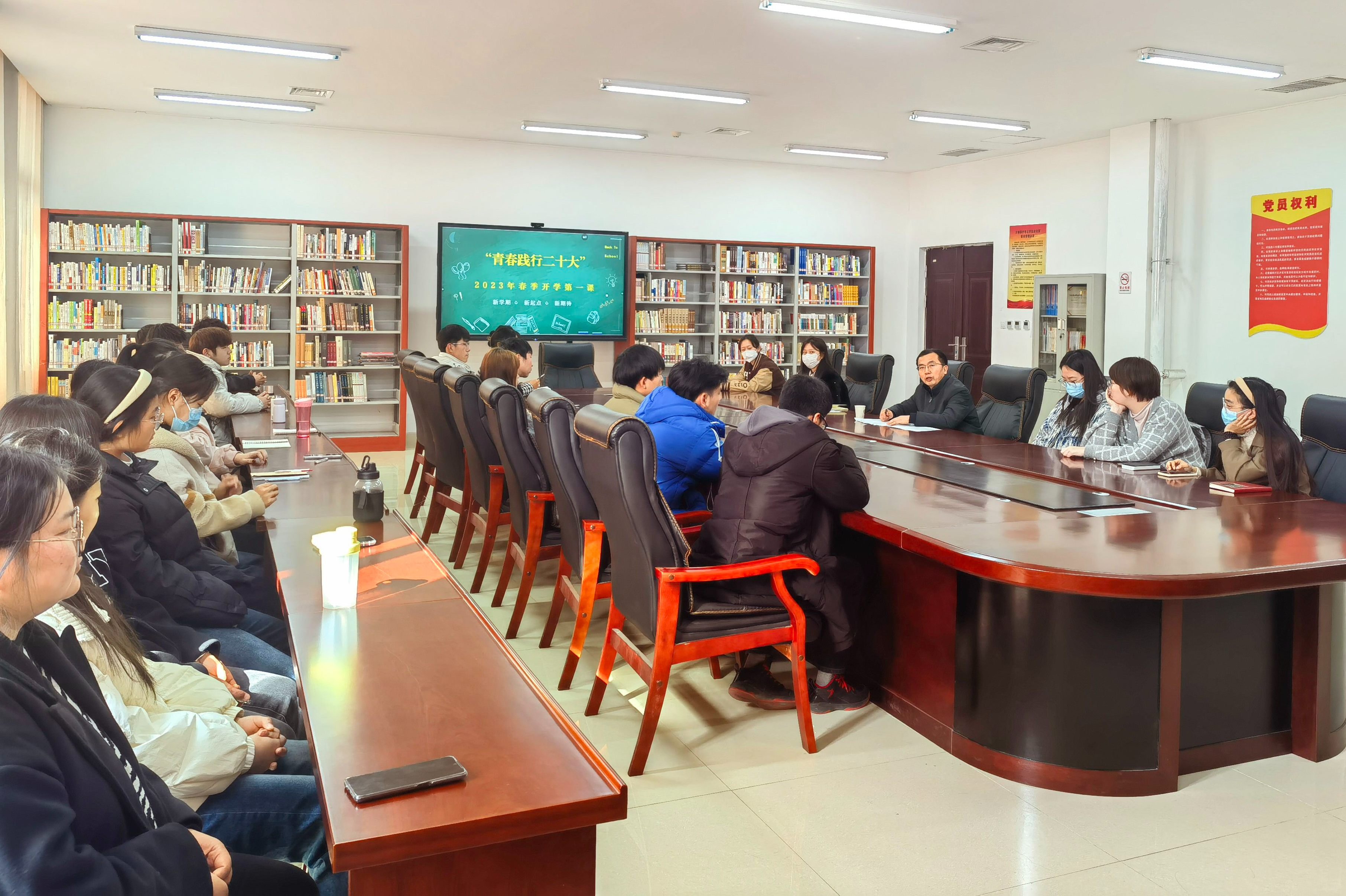 副校长余江宁在文物保护考古学院为2021级文物考古技术301班的学生讲授了新学期开学第一课。学生代表围绕“爱国、团结、奋斗、科学、互助”五个关键词,分别分享了个人在寒假期间的所见所闻所想。余江宁在讲课中带领大家回顾了三年来非凡的中国抗疫答卷,讲述了洛职学子在抗击疫情中的先进事迹。他勉励同学们要继续做好个人防护,保持积极向上的精神风貌,珍惜大好青春年华,充分利用学校图书馆丰富资源,扩大眼界,增加知识面,努力做到“精于工,敬于业,专于技,勤于学,匠于心”,在新的学期开启新的征程,激扬青春,不负韶华。