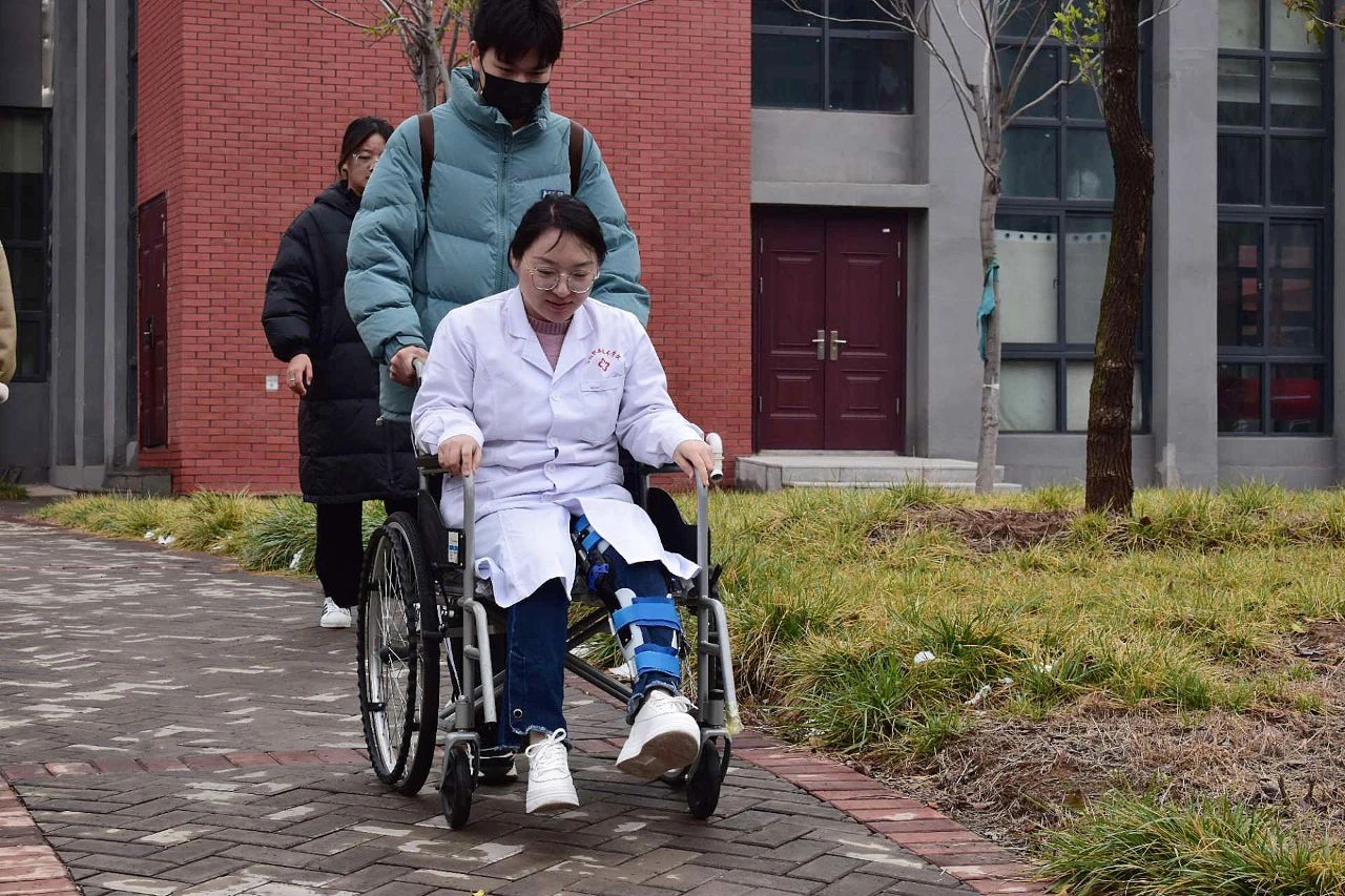 虽然有充分的思想准备,预料到行动不便会带来很多麻烦,但让方飞宇始料未及的是,同事们早早从护理与康养学院借来了轮椅、拐杖,供她在校园内使用;午饭时间,老师们还会轮流从餐厅为她带饭;基础医学院还专门向后勤保卫处申请,将她上课所在的教学楼电梯调整到每一层都能停靠,方便她上下楼。