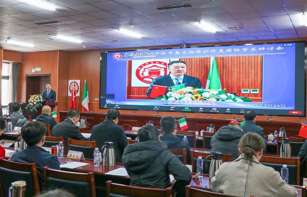 3月25日下午,我校在图书馆930会议室举行中意文物保护修复国际学术研讨会。中国文化遗产研究院研究员詹长法,中国文化遗产研究院教务长张晓彤,洛阳市文物局局长余杰,我校校长赵健,副校长余江宁、李保安出席研讨会,部分文博行业重点单位与院校相关负责人参加研讨会,意大利文物保护相关专家学者以线上形式参会。
