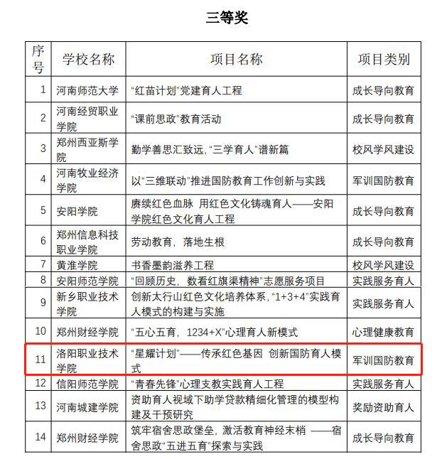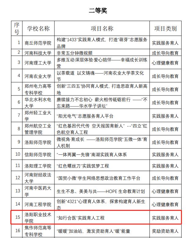 近日,河南省教育厅公布河南省2022年普通高等学校学生工作优秀成果项目获奖名单,我校两个参赛项目获奖。