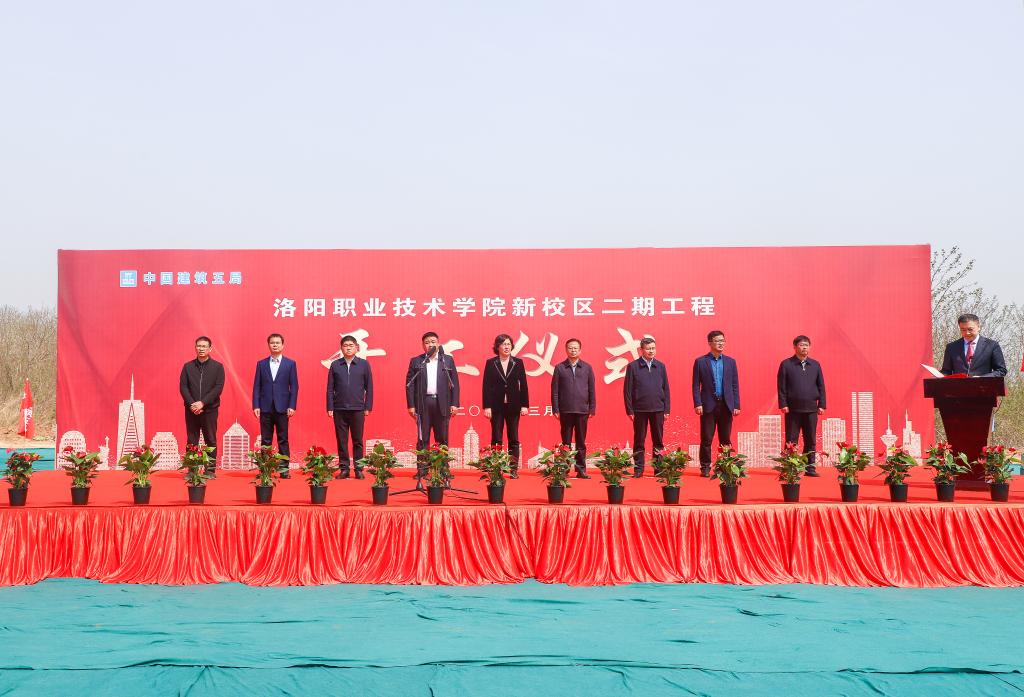 洛阳市副市长任丽君、中国建筑第五工程局有限公司副总经理高鹏,洛阳职业技术学院党委书记朱美荣、校长赵健出席开工仪式。