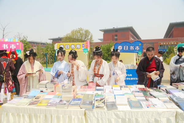 汉服飘飘,琴声袅袅,挥毫泼墨,书香四溢。4月19日,洛阳职业技术学院举办“迎接第28个世界读书日”春日书市活动。