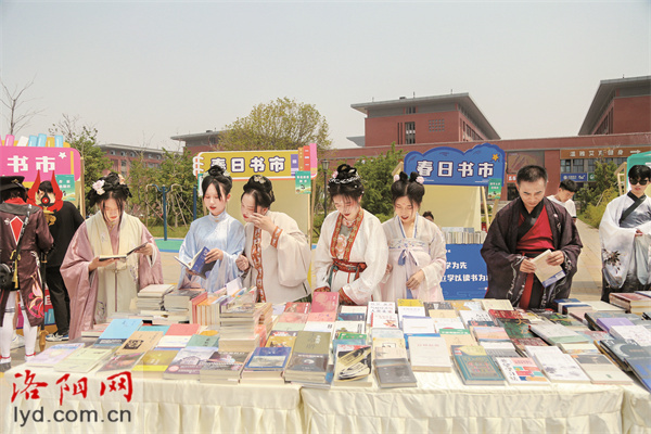 今日是世界读书日。近日,洛阳职业技术学院举办了“春日书市”活动,学生们身着汉服在书市挑选书籍,现场体验投壶、手绘牡丹团扇等古色古韵的游戏,让参与者感受中华文化独特魅力;新安县西关小学开展了世界读书日活动,孩子们身着汉服诵读经典,沉浸式体验传统文化。