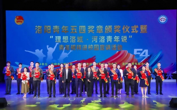 此次活动由洛阳市委宣传部指导,共青团洛阳市委、洛阳市青年联合会主办。颁奖仪式上,2022年度洛阳青年五四奖章获奖个人和集体登台领奖。